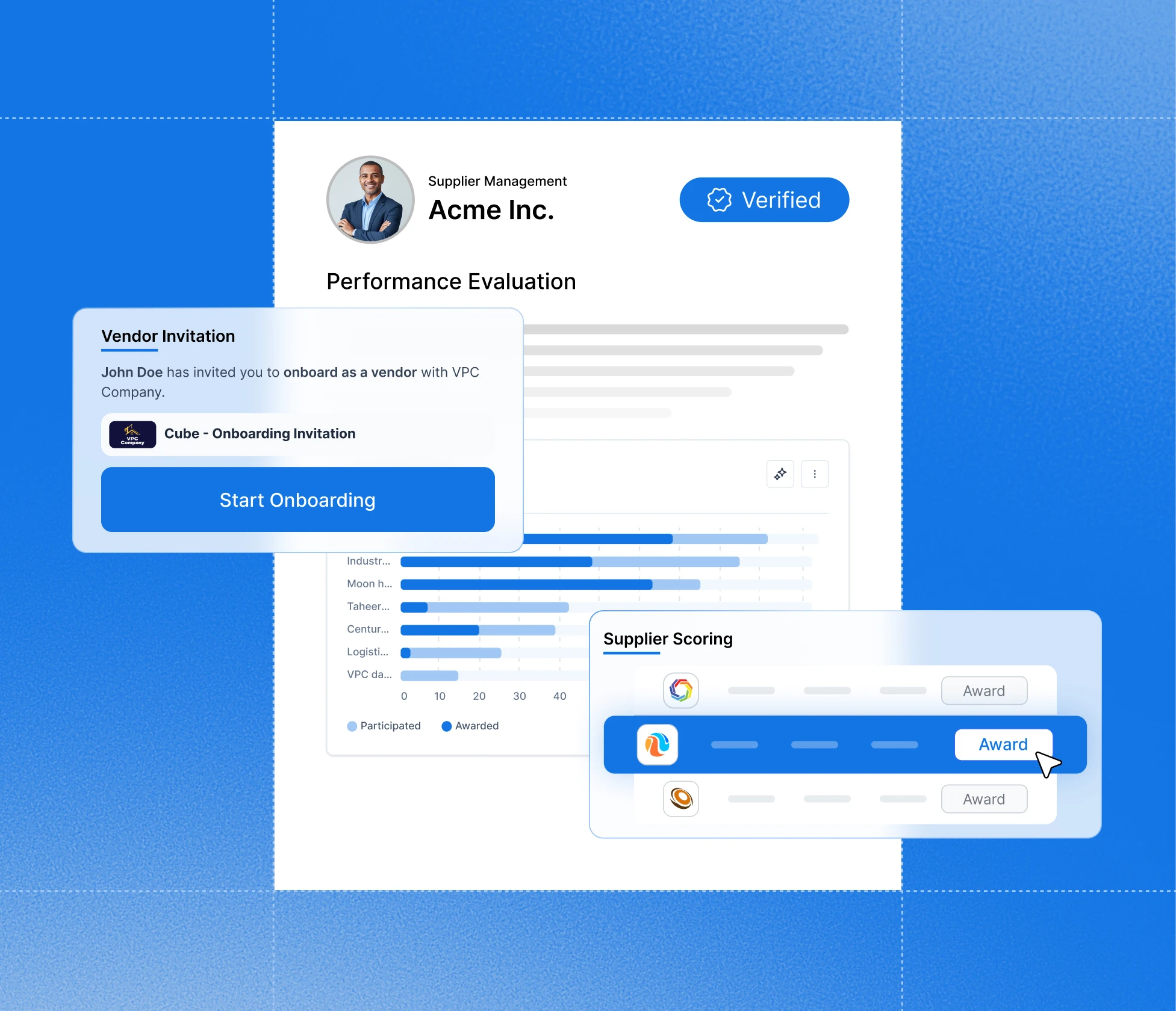 Collect, evaluate, and act on supplier data, from onboarding to performance on a centralized supplier database. Make smarter decisions with performance scoring, risk insights, and continuous monitoring.