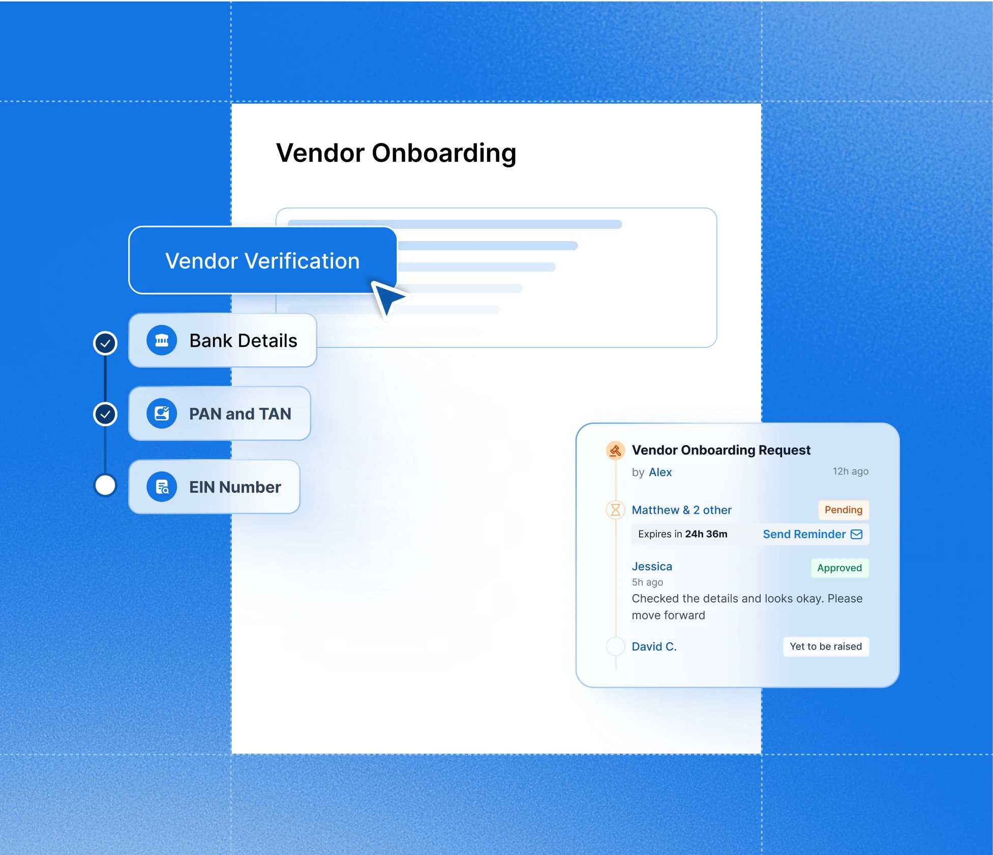 Streamline vendor onboarding with configurable forms and templates. Automate document verification and plug in approvals to make the process fast, smooth, and compliant.