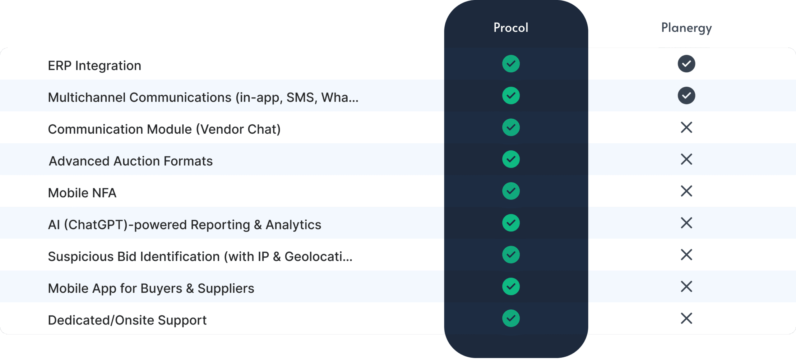 Procol vs. Planergy at a glance